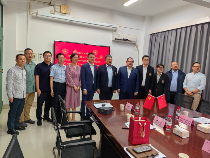 5月29日下午,永利集团304am登录与泰国农业大学围绕生物基材料联合研究院合作事宜展开深度交流,双方就科研合作、学生培养、教师互访、产业应用等议题进行座谈,并开展实验室参观等系列活动。泰国农业大学校长达姆龙・席帕拉姆(Damrong Sripraram)、副校长格里・文因(Krit Won-in)、理学院院长万猜·普伦帕努帕特(Wanchai Pluempanupat)、工程学院院长万猜·约德素斋(Wanchai Yodsudjai)等校方代表,与永利集团304am登录、计算机学院相关负责人及专家团队共同参与了此次合作交流。
